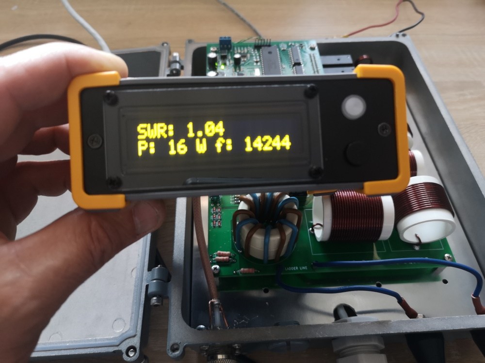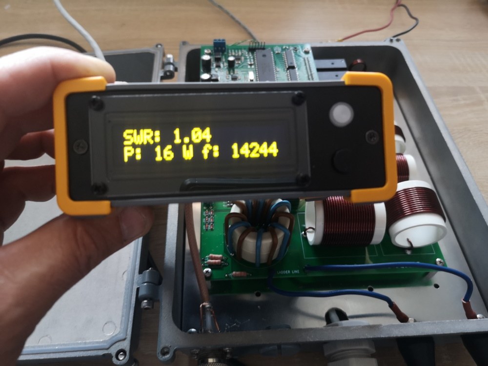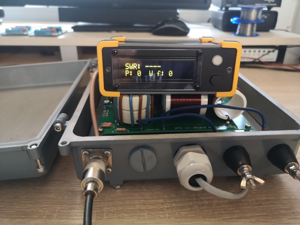 Skrzynka może pracować jako wersja na biurkowa w domu, lub wersja zewnętrzna pod antena na końcu drabinki. Do wersji zewnętrznej potrzebny jest odpowiedni sterownik aby można było odczytać wszystkie pomiary skrzynki i sterować jej pracą. Sam sterownik jest cały czas udoskonalany. W sofcie zawarto wiele ciekawych funkcji jak np. strojenie pełne lub skrócone, pamięci, możliwość obsługi remote. Testuję tą wersje anteny od ponad roku i działa wszytko bardzo dobrze. Poniżej umieszczam kilka zdjęć skrzynki oraz moją instalacje doubleta.
