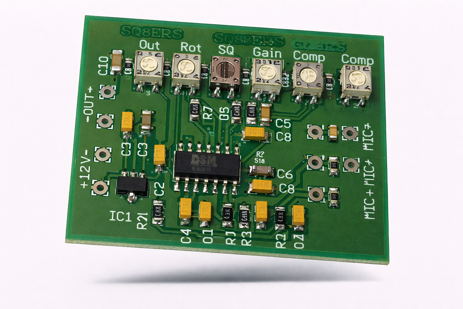 Kompaktowy kompresor dynamiki z bramką szumu w formie płytki montażowej, zaprojektowany jako uniwersalny element toru audio mikrofonów CB i amatorskich systemów nadawczych. Sercem układu jest SSM2166 – inteligentny, niskoszumny przedwzmacniacz mikrofonowy z wbudowaną kompresją dynamiki oraz bramką szumu.
